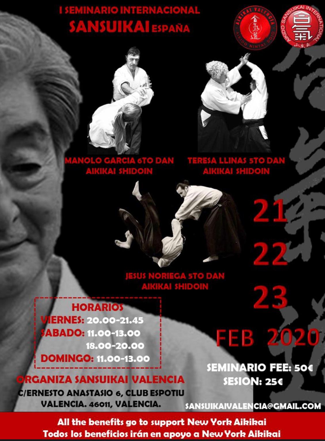 Manolo García Shidoin 6th Dan Aikikai, Teresa Llinas Shidoin 5th Dan Aikikai, and Jesús Noriega Shidoin 5th Dan Aikikai.